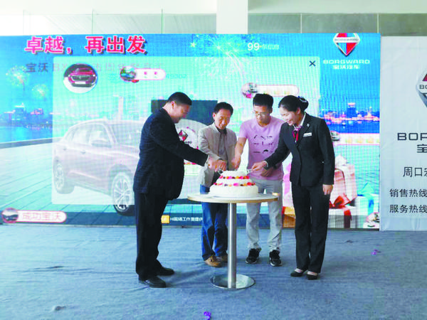 ▲4月22日上午,周口宏驰宝沃4S店举行了宝沃BX7上市一周年和试驾活动。图为活动现场。记者 戚团结 摄