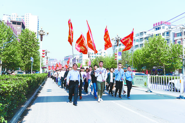 为培养职业人群日行万步的生活习惯,推进创建省级慢性病综合防控示范区建设,4月28日上午,郸城县在世纪广场举行“万步有约”职业人群健走激励大赛启动仪式,来自该县24家机关和企事业单位520多人参加启动仪式,并实施日行万步计划。记者 徐松 摄