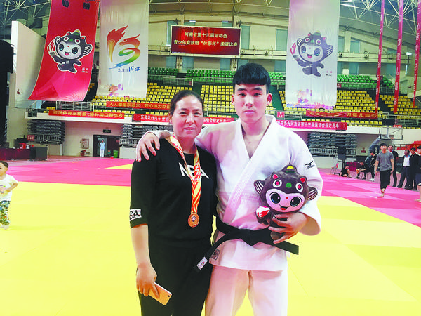 5月3日下午,周口代表队的王世豪在省十三运会青少年竞技组柔道比赛男子甲组60公斤级决赛中,艰难战胜自己的老对手——濮阳代表队的王晓同,获得冠军。在颁奖现场,王世豪走下领奖台把脖子上的金牌挂到母亲的脖子上,场面十分温馨,令人感动。