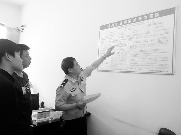周口市公安局交通管理支队六大队是专门负责市区交通事故处理的部门。六大队的交通事故处理办公室里已悬挂着新制作的道路交通事故处理流程图。