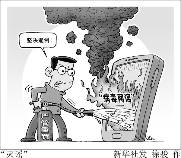 移动互联网时代,常有虚假信息经网络放大、迅速发酵,造成恶劣影响和社会危害。受访公安人员及专家分析,谣言之所以难灭,主要因为“转得轻易”“管得不严”“罚得太轻”,亟须政府部门、互联网企业、自媒体用户等形成“灭谣”合力。新华社发 徐骏 作