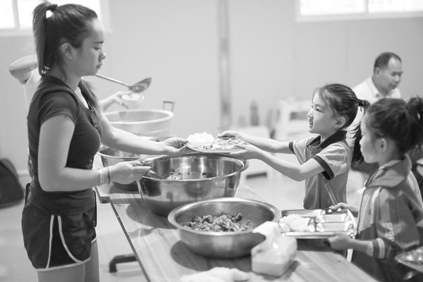 图4为小学员们在结束训练后在榕江县少年儿童业余体操运动学校食堂用餐(5月15日摄)。新华社记者 刘续 摄