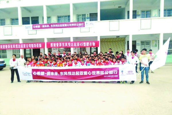 5月 19日7时30分, 由周口普泽起亚6S店主办的“心希望,信未来”爱心捐赠活动在商水县固墙镇朱殿下小学举行(如图)。