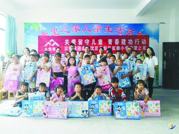 本报讯 5月15日,周口众恒集团董事长王文涛、周口众恒新能源汽车城总经理司巧巧、周口众恒集团上汽名爵4S店总经理田长江一行来到了沈丘县新区实验小学“希望之家”,为这里的孩子带来了价值4000元的学习及生活用品。
