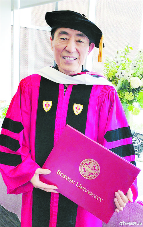 本报综合消息 在美国波士顿大学5月20日举行的2018届毕业典礼上,中国导演张艺谋被授予波士顿大学人文艺术荣誉博士学位。