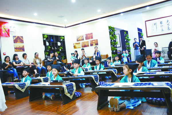 课堂上,孩子们在老师的带领下正衣冠、纠坐姿、行拜师礼、朗读《弟子规》……对他们来说,这是一种新奇的学习体验:原来国学学习的不仅是知识,还有言行举止、待人礼仪、处世之道以及道德修养等。他们好奇、尝试、学习,仿佛进入了另一个世界。