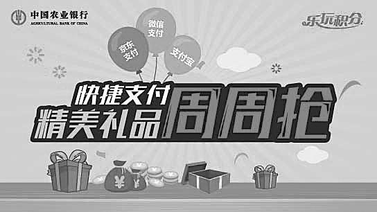 活动期间,农行信用卡主卡持卡人每周通过指定第三方支付渠道(支付宝、财付通、京东支付)累计消费满1000元,即可于次周周五11时通过掌上银行APP活动页面领取券码,券码号按领取时间顺序依次发放,领取到尾号为“6”的幸运券码的客户即可以“6”积分兑换爆款礼品,每人每周仅能领取一次,礼品数量有限,领完即止!每位客户活动期间仅限获得一次礼品!
