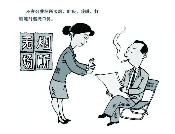 不在公共场所吸烟、吐痰,咳嗽、打喷嚏时遮掩口鼻。