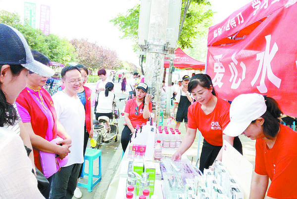 本报讯 6月7日,一家爱心企业在周口一高考点外搭建了“爱心水亭”(如图),供人落脚休息,温暖了不少考生和家长。