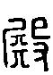 “殿”的左边由“尸”“共”构成一字,读为“tùn”,本义为屁股,可视为“臀”之省写;右边的“殳”,读为“shù”,其甲骨文为手持棍棒敲打形。左右合在一起表示在身后敲打,不见其动,只闻其声。故“殿”字的本义为“臀击之声也。”《说文·殳部》:“殿,击声也。”本义为身后打击声,引申指最后,殿后、殿军。