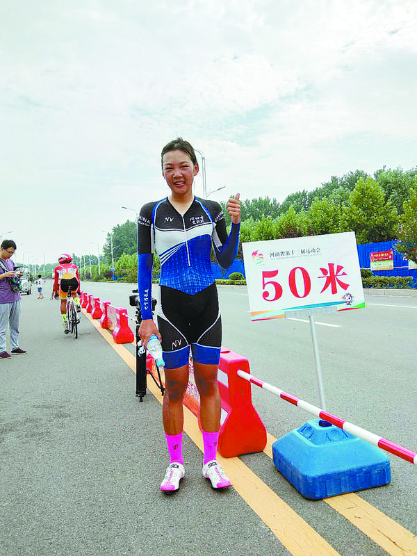 当日上午,随着裁判员一声令下,比赛正式开始,首先出发的是郑州队选手,此后每隔1分钟出发1名参赛选手,我市选手贾园园最后一个出场。在前半程比赛中,贾园园严格按照教练布置的战术,合理分配体力,保持匀速行驶。贾园园的强项是直线骑行。在这种情况下,她的爆发力和速度往往令对手望而生畏。最终,贾园园在比赛中连续超越对手,夺得冠军。