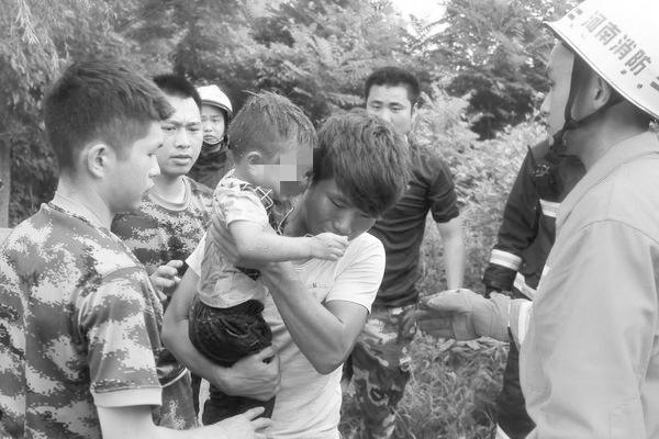 16时20分,救援人员在做好救援准备工作后,第一次尝试救人。由于幼童长时间处于井下,心里比较恐惧,一直无法配合营救。为此,何超峰从附近找来渔网,将渔网套在幼童身上。
