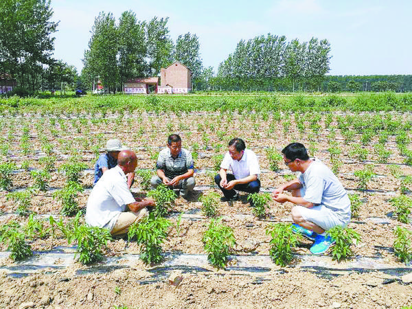 本报讯“你看这个辣椒,长势不赖,很快就可以上市出售了。”说这话的是郸城县南丰镇郭店行政村驻村第一书记黄锦福。6月24日上午,他正在和市国土资源局工作人员、村民们讨论如何改良土质,进一步提高辣椒的产量。