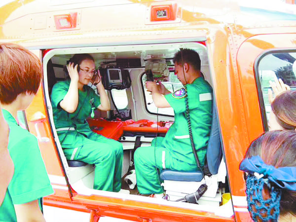 当日,简短的启动仪式结束后,参会人员一起来到救援直升机前,近距离观看舱内配备的呼吸机、除颤监护仪、注射泵等医疗设备。