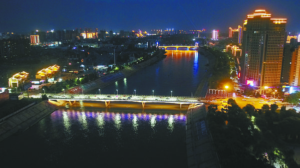 市民李先生说:“我每天晚上都来周口大闸附近遛弯儿。以前这附近的路灯只有几盏,比较单一,今年实施夜景亮化工程后,各式路灯将夜晚装点得绚丽多彩。每天出来不仅可以锻炼身体,还可以欣赏到美丽夜景,感觉日子更有盼头了。”