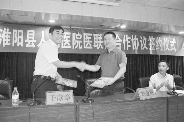 7月5日上午,周口市中心医院与淮阳县人民医院举行医联体合作签约仪式。双方的签约合作,能够实现医联互助、技术协作、资源共享、合作共赢的目的,更好地为淮阳县广大人民群众卫生健康保驾护航。通讯员 苏叶松 摄
