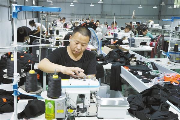 商水县老城办事处大张行政村共有451户2266人,其中建档立卡贫困户61户248人。为帮助贫困户尽快脱贫致富,该村在办事处领导的大力支持下,引进瀚玺服饰公司在村头开办服装加工车间,安排贫困人员就近就业,打工脱贫。图为7月17日上午,工人正在加工订单服装。