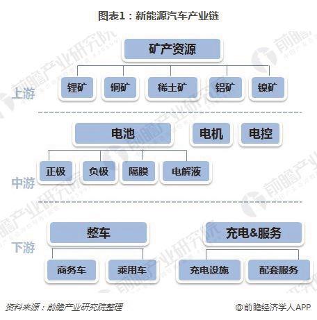 新能源汽车对传统汽车的改变不仅体现在驱动力的改变上,还在于它能够提供一个完全不同的产业链,带动相关产业的上下游发展。新能源汽车产业链如下图所示。
