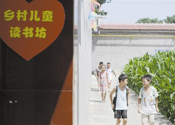 7月25日,在河北省邢台市桥西区东马庄村,小学生前往“乡村儿童读书坊”阅读。