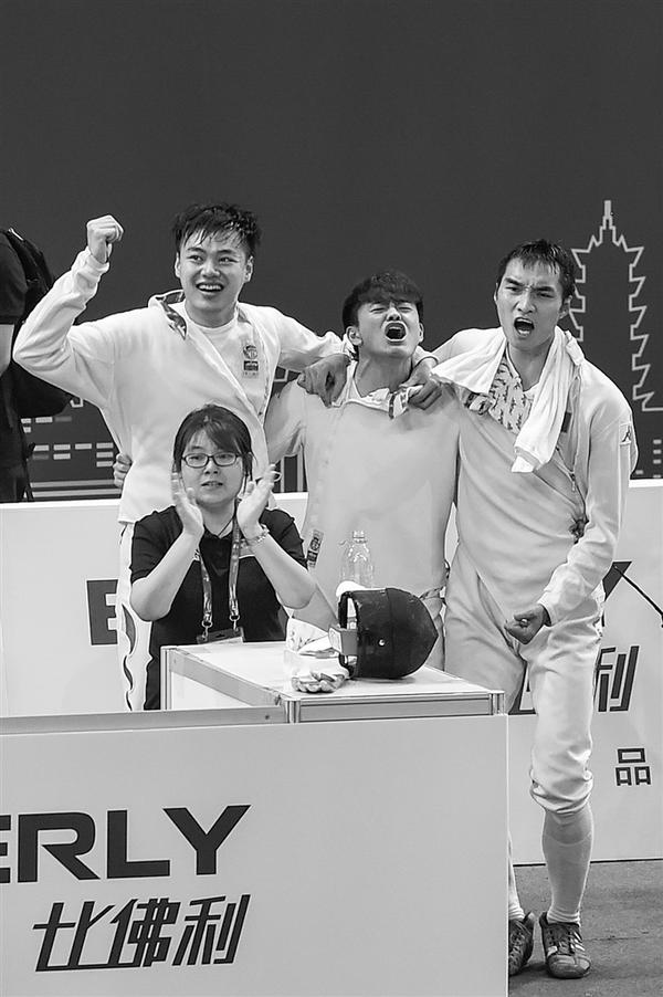 7月25日,在江苏省无锡市举行的2018世界击剑锦标赛男子重剑团体赛16进8的比赛中,中国队以45∶36战胜乌克兰队,晋级八强。