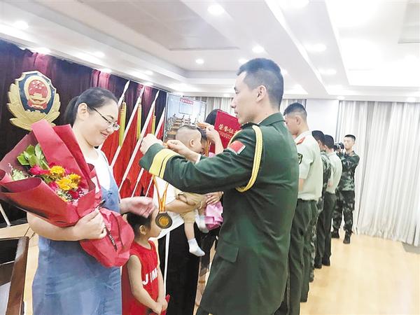报告会现场,在官兵为家属献花、颁发证书、戴奖牌这一环节时,看着丈夫亲手为自己送上这份荣誉时,每个军嫂的眼中都热泪盈眶,她们紧紧拥抱着自己的爱人,泪水打湿鲜花。她们有的独自挑起家庭重担,不让丈夫分心;有的放弃优越工作,告别繁华都市,来到驻地支持丈夫建功立业;有的情系官兵,成为战士们信赖的“知心嫂子”。