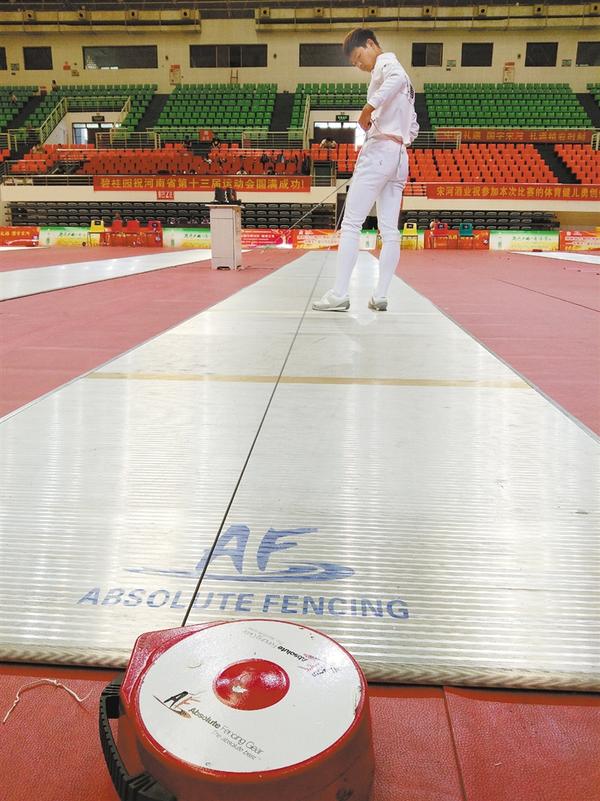 8月22日上午,在省十三运会青少年竞技组现代五项击剑比赛现场,拖线盘、裁判器、传感器……一大批击剑比赛用的现代化装备与观众见面,吸引了不少人的目光。