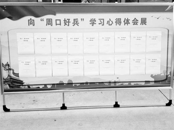 周口市、县两级征兵办坚持把“周口好兵”系列宣传报道作为役前训练思想政治教育的重要内容,专门下发通知,在全体参与役前教育训练人员中广泛开展“用榜样标杆引领、向‘周口好兵’看齐”活动。通过组织人员认真学习“周口好兵”的先进事迹,请家长回忆“周口好兵”的“兵之初”,请周口晚报社记者讲述“周口好兵”背后的故事,使大家近距离认识“周口好兵”、感触“周口好兵”。通过开展“如何争当‘周口好兵’”专题讨论、撰写学习心得体会、“我的从军梦”演讲等活动,注重引导大家向先进学习、向典型靠拢、向榜样看齐,激发了广大适龄青年参军入伍建功立业的热情。周口军分区政委元相学说:“《周口晚报》刊发的‘周口好兵’,每一个都是典型,每一个都是榜样。在役前教育训练人员中广泛开展学习活动,就是引导他们以‘周口好兵’为榜样,引领自己当好‘兵之初’、走好军旅路。”