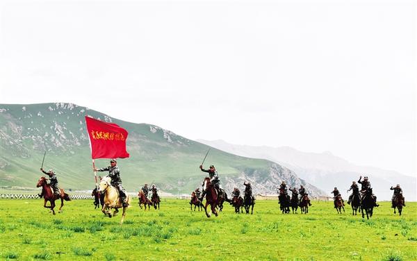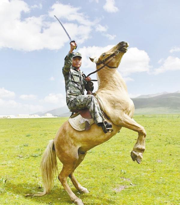 盛夏的巴塘草原,天蓝草绿,战马嘶鸣。不远处的开阔地上,竖着7个高低不同的靶标。随着连长王育龙一声令下,驾着“头马”的上士赵雪超高声长啸扬鞭策马疾驰,他利落地拔出马刀,左刺右劈,刀起靶落,一整套动作一气呵成,彪悍十足。近距离观摩课目示范的骑兵连新兵一个个惊呼“开了眼”,都说从赵班长身上看到了影视剧里蒙古铁骑的影子。
