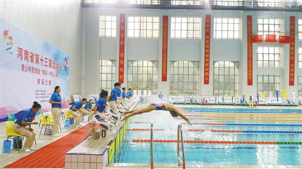 本报讯 9月1日上午,省十三运会青少年竞技组游泳比赛在市体育中心周口游泳馆开赛,共有来自全省的17支代表队780名运动员参赛。