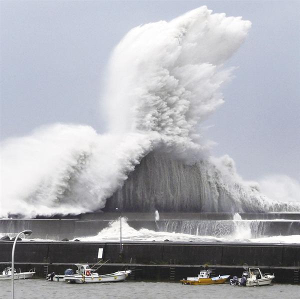 今年第21号台风“飞燕”4日中午在日本德岛县南部登陆,这是25年来登陆日本的最强台风。日本气象部门呼吁居民严密警戒,确保安全。 新华社发