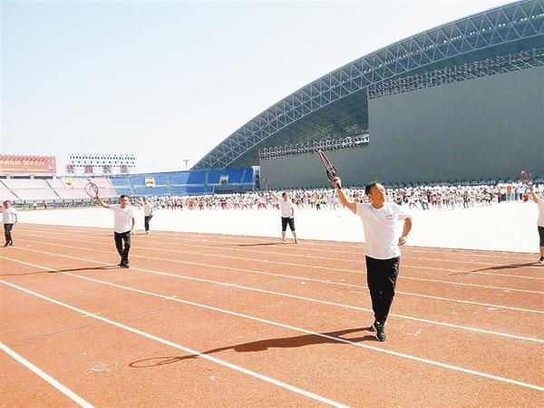 经过前期紧张、高强度的训练,在进入省运会开幕式倒计时阶段的关键时刻,在导演组的精心指导下,全体演员高度融入整个暖场节目的合成表演之中。