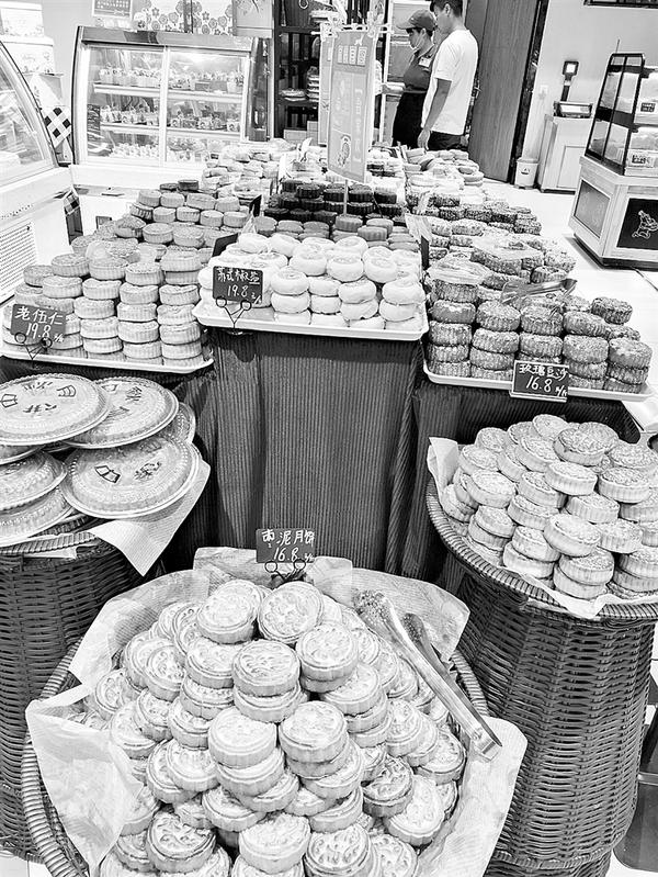 本报讯 随着中秋佳节临近,我市食品市场成了月饼的舞台。近日,记者走访发现,我市许多超市、烘焙店将各式各样的月饼摆在了最显眼的位置(如图)。