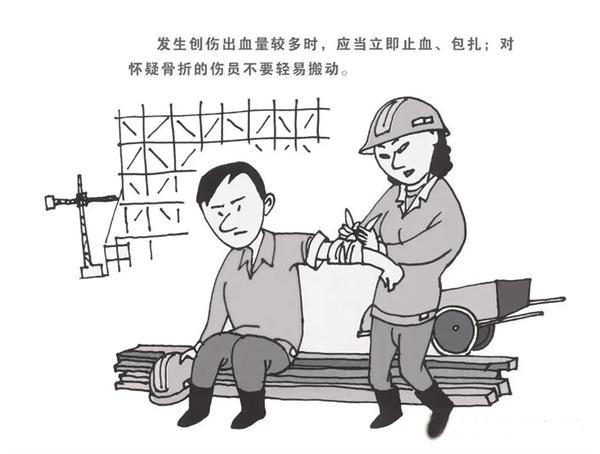 发生创伤出血量较多时,应立即止血、包扎;对怀疑骨折的伤员不要轻易搬动。