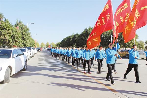 10月27日上午,我市千余名健步走爱好者齐聚周口市体育中心广场,参加2018年周口市健步运动协会队列展示交流赛。简短的仪式后,浩浩荡荡的健步走大军从这里出发,沿着沙颍河岸边完成大约10公里的路程。记者 王凯 摄