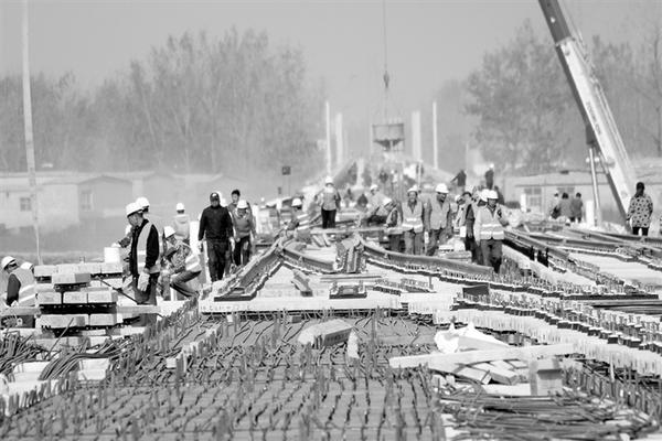 当日11时许,记者在施工现场看到,周口东站站房架空层主体已完工。邻近中午,数十名头戴安全帽的工人正在5000平方米候车大厅工地焊制钢筋笼,现场一派热火朝天的景象。