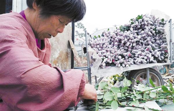 11月4日,商水县一花农在玫瑰大棚内包装含苞待放的玫瑰,备战“双十一”。记者 付永奇 摄