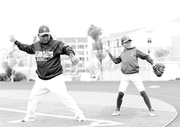 图2.11月8日,在连城县实验小学运动场,教练指导小棒球手投球技术。
