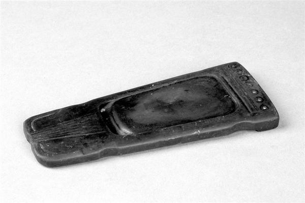 1986年,鹿邑县农行基建工地窖藏出土的琴形端砚,后入鹿邑县博物馆。