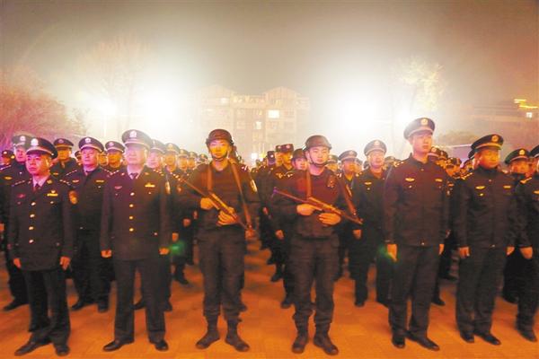 仪式现场,16车警车警灯闪烁,全体民警及地方保安队员、义务巡逻队员列队整齐、整装待发。随着市政府副市长、公安局局长王平一声令下,满载巡防队员的16辆警车按照既定路线奔赴中心城区各个角落,到指定区域集中开展巡逻防控。