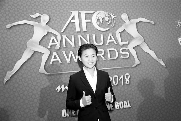 11月28日,在阿曼马斯喀特举行的2018年亚足联年度颁奖典礼上,中国球员王霜当选亚洲足球小姐。
