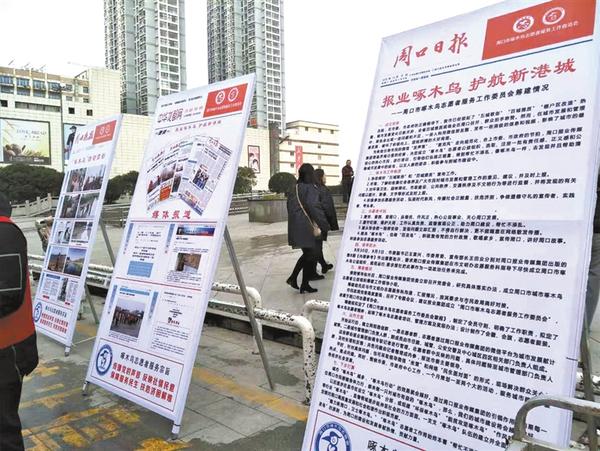 在周口市啄木鸟志愿者服务工作委员会展台前,很多市民争相索要宣传资料,并用手机拍摄宣传展板上的内容。啄木鸟志愿者通过设置咨询服务台、摆放展板、悬挂条幅等方式,开展全方位、多角度的志愿服务宣传活动。在活动现场,啄木鸟志愿者还与爱心企业一起向环卫工人捐赠了生活用品。