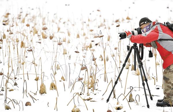 12月6日,一位摄影爱好者在沈阳清昭陵内拍摄残荷。