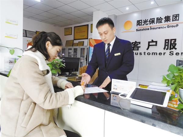 今年以来,阳光人寿保险周口中心支公司秉承“打造最具品质和实力的保险公司”的企业愿景,急客户之所急,想客户之所想,力求为客户提供优质、高效的理赔服务。图为公司员工在为客户办理理赔服务。记者 徐如景 摄