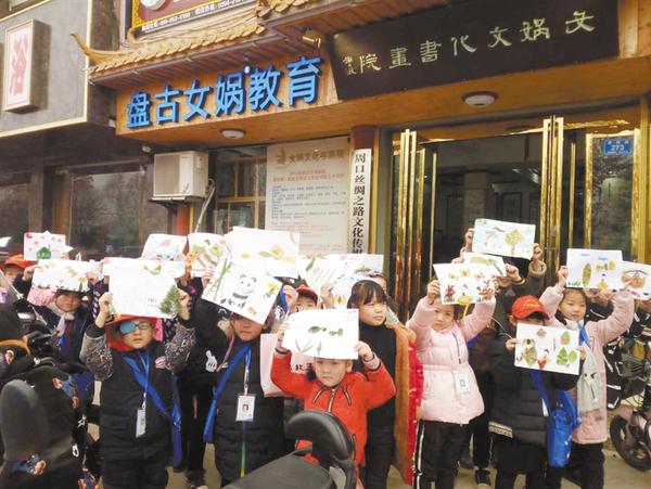 本报讯 12月15日上午,50余名西华小记者来到女娲文化书画院,在参观书画院之后,参加巧手拼贴树叶画活动。