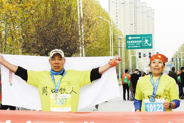 几年来,李学文多次参加在横店、婺源等地举行的全国各地马拉松赛,每次都能安全顺利完成比赛。图为参加“周马”的李学文。