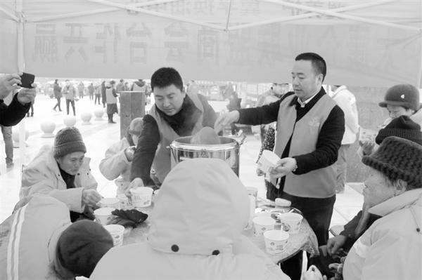 1月13日,太康县在县人民广场举办“一碗腊八粥 温暖一座城”腊八粥分享活动。当天,主办方把3000份腊八粥和馒头送给了环卫工、执勤民警、外卖小哥等,传递出浓浓爱意。图为活动现场。 记者 马治卫 通讯员 衡霞光 摄