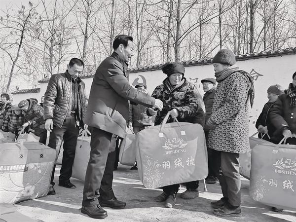 周口耳鼻喉医院院长王银帮热心慈善事业,经常捐助孤寡老人和留守儿童,尤其是不忘家乡,先后筹资20多万元为家乡修路、助学、送温暖活动。近日,王银帮又为家乡老人、儿童捐献了十多万元的棉衣、被子、书包等物品。“不忘初心,共建幸福”是王银帮院长最常说的话。记者 刘艳霞 摄
