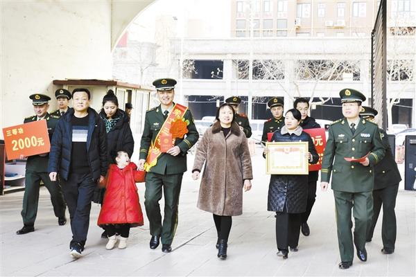 当日上午,川汇区政府工作人员,川汇区人武部部长陈继芳、政委高新传,市退役军人事务局相关负责人,与由武警周口支队政委韩伟锋带领的另一支送喜报小分队一起来到中心城区建安路附近的一个小区,为荣立三等功的苏航及其家属送去立功喜报和慰问金。