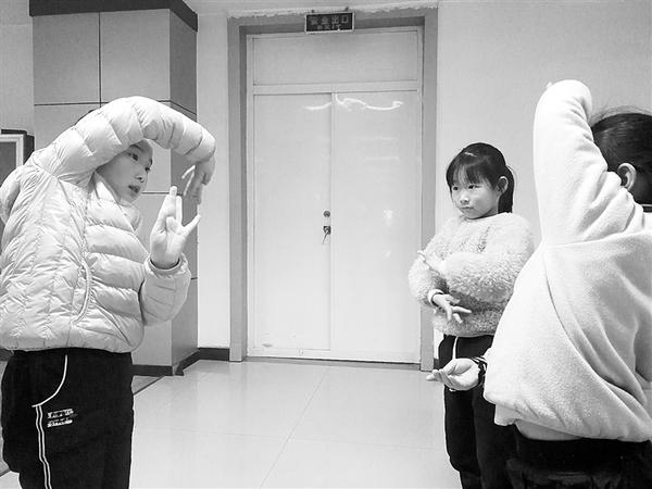 寒假里,孩子们一边享受假期带来的快乐,一边相互交流学习心得。图为3位小朋友在交流舞蹈技巧。记者 刘俊涛 摄