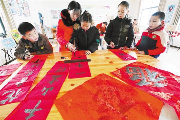 春节前夕,江西省樟树市乡村文化宫、社区四点半课堂及留守儿童之家等活动场所增设的剪窗花、写对联等迎春文化活动,吸引了不少孩子前来学习体验。新华社记者 宋振平 摄